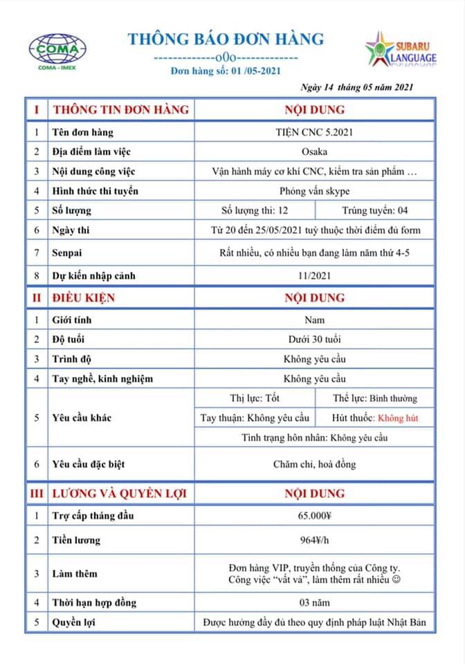 [ĐƠN HÀNG THÁNG 5/2021] - TIỆN CNC